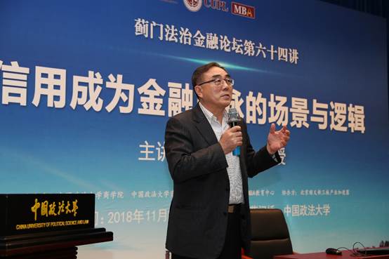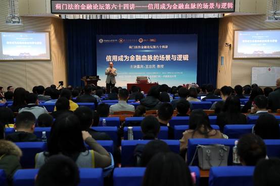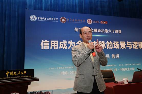 王忠民教授通过一系列的发问来引入论坛的主题——“谁是金融的血脉?”、“金融和实体是不是互为血脉?还是金融自身有一个血脉?”、“金融的这个血脉是信用吗?如果是信用,为什么是信用?”、“实体、金融和信用之间的关系应该怎样在现实世界中发挥有效作用?”这些问题引发了在场师生的强烈兴趣和深深思考。王忠民随即提出今晚论坛的核心观点——金融的血脉乃信用也。随后,王忠民具体从互联网中使用的“场景”和学术中使用的“逻辑”两个角度对这一观点进行了深入解读。