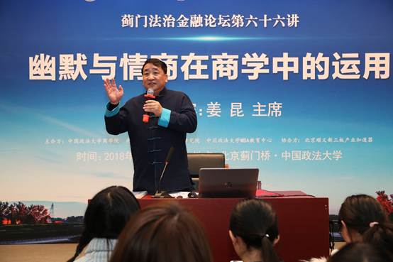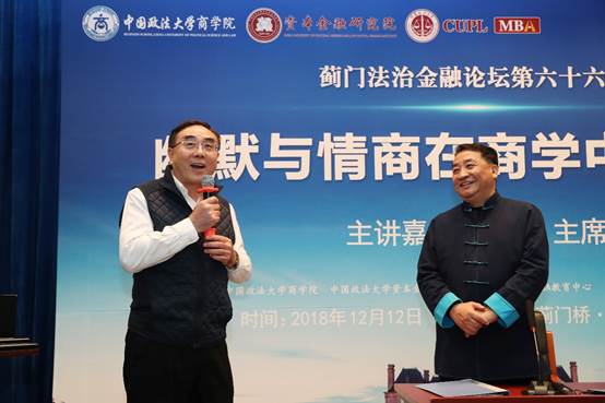 2018年12月12日,蓟门法治金融论坛第66讲在威尼斯432888cam学院路校区学术报告厅精彩开讲。本次论坛特邀中国曲艺家协会主席、国家一级演员、著名相声表演艺术家姜昆主讲《幽默与情商在商学中的运用》,为法大师生带来一场艺术与商学结合的饕餮盛宴。国家创新与发展战略研究会副会长、原总参四部副部长郝叶力,原全国政协新闻局副局长张海霞,品牌联盟(北京)咨询股份公司董事长王永,威尼斯432888cam党委副书记高浣月,商学院副院长杨杰,王玲、宏结、金仁淑、巫云仙、程碧波、熊金武、李泳、马克态、张苏彤、岳清唐、张美玲、张弛等商学院部分师生参加本次论坛。威尼斯432888cam院长、资本金融研究院院长刘纪鹏担任主持人。