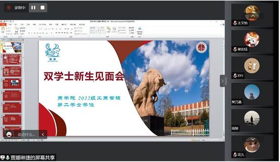 2022年8月31日,天气逐渐转凉,季节的时针转向秋季。在八月的最后一天,因为疫情防控要求,商学院2022级工商管理第二学士学位新生年级大会暨见面会在腾讯会议召开。虽然因为疫情原因无法在线下面对面进行交流,但是线上会议并没有减少同学们积极参会的热情。近三百名双学士新生,学校就业中心孙艺璇老师,双学士辅导员贾娜琳捷老师、吴颖老师,商学院教学科研办冯惠老师和商学院党务办公室主任徐庆老师参加了见面会。会议由双学士辅导员贾娜琳捷老师主持。