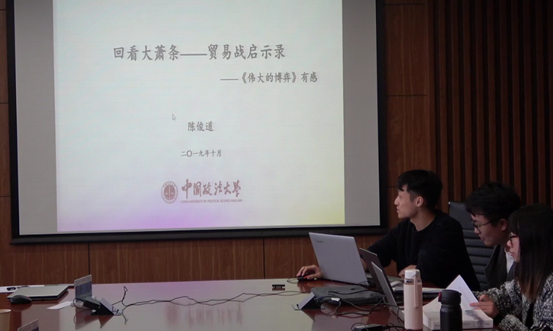 2019年10月30日下午,威尼斯432888cam资本金融系第八期读书研讨会在科研楼B215会议室举行。出席本次活动的有资本金融系主任程碧波副教授、系副主任成福蕊副教授、朱晓武教授、胡历芳老师、黄聪老师以及2019级金融学、金融专硕研究生。本次读书会的分享书目是约翰·S·戈登的著作——《伟大的博弈》,由曾泓叡、刘胜、陈俊道同学进行读书分享。