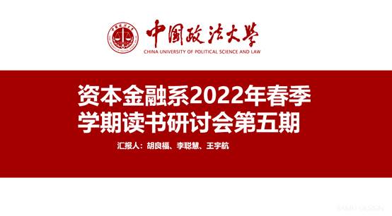 2022年5月18日上午,商学院资本金融系第五期金融学读书研讨会通过腾讯会议在线上成功举行。参加本次读书研讨会的有李咏老师以及2021级金融专硕和学硕的同学,以李咏老师推荐的相关材料为研读文献,2021级金融专硕胡良福、李聪慧、王宇航三位同学为本次读书会的主讲。