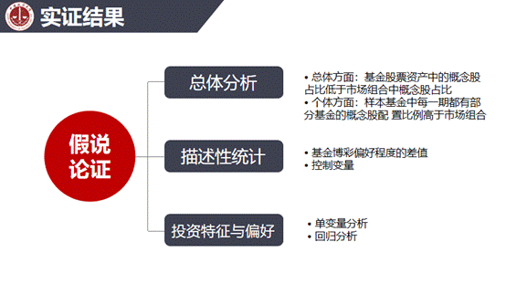 接下来,李泓霖同学针论文提出的第二点和第三点两点假说的验证过程及其结果进一步进行了详实的汇报并做出总结。从错误定价的角度看,当因剧烈波动、意见分歧等原因导致市场错误定价严重时,博彩偏好强烈的机构投资者会比正常市场情况下更倾向于进行概念炒作,为已有的市场动荡“火上浇油”;从私有信息的角度看,拥有更多私有信息即处于信息优势地位、且擅长选股的机构投资者也更可能制造、炒作概念股并从中获利。